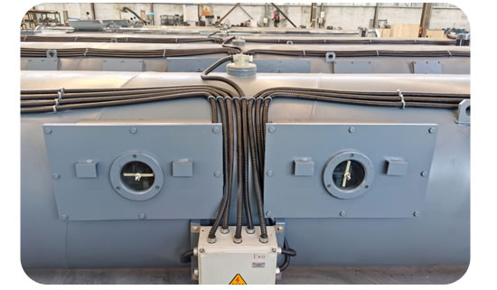 ◆ 給煤機外殼設多處觀察窗,兩端有方便的擺臂式檢修門,機體上設有多處照明燈。